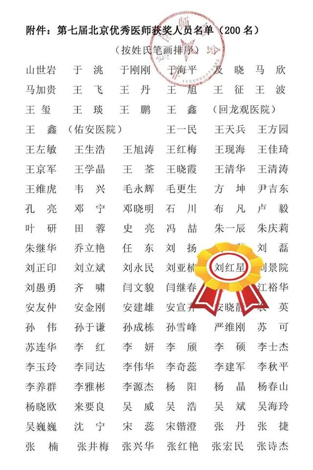 日前,北京市医师协会公布了第七届北京优秀医师获奖人员名单,包括北京陆道培血液病研究院副院长、陆道培医院病理和检验医学科主任刘红星在内的 200 名医师获评此项荣誉。