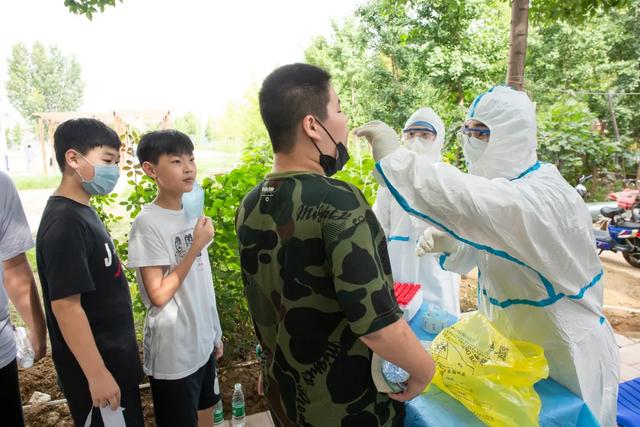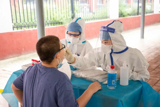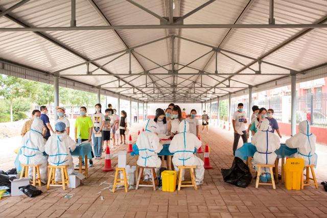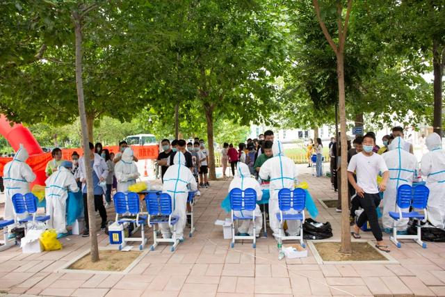 为了尽快完成核酸采样任务,我院每天最多负责 8 个采样点,出发时间提前到 6:30,所有采样人员按照统一分派准时到达现场,保证各采样点准时开放。连续八天,全院各科室的员工踊跃参加,他们不顾骄阳,冒着风雨,全身防护白衣执甲,认真为每一位学生、教职员工进行咽试子采集。