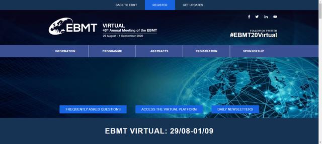 2020 年第 46 届欧洲血液与骨髓移植学会 (EBMT) 年会/虚拟会议于 2020 年 8 月 29 日至 9 月 1 日举行。